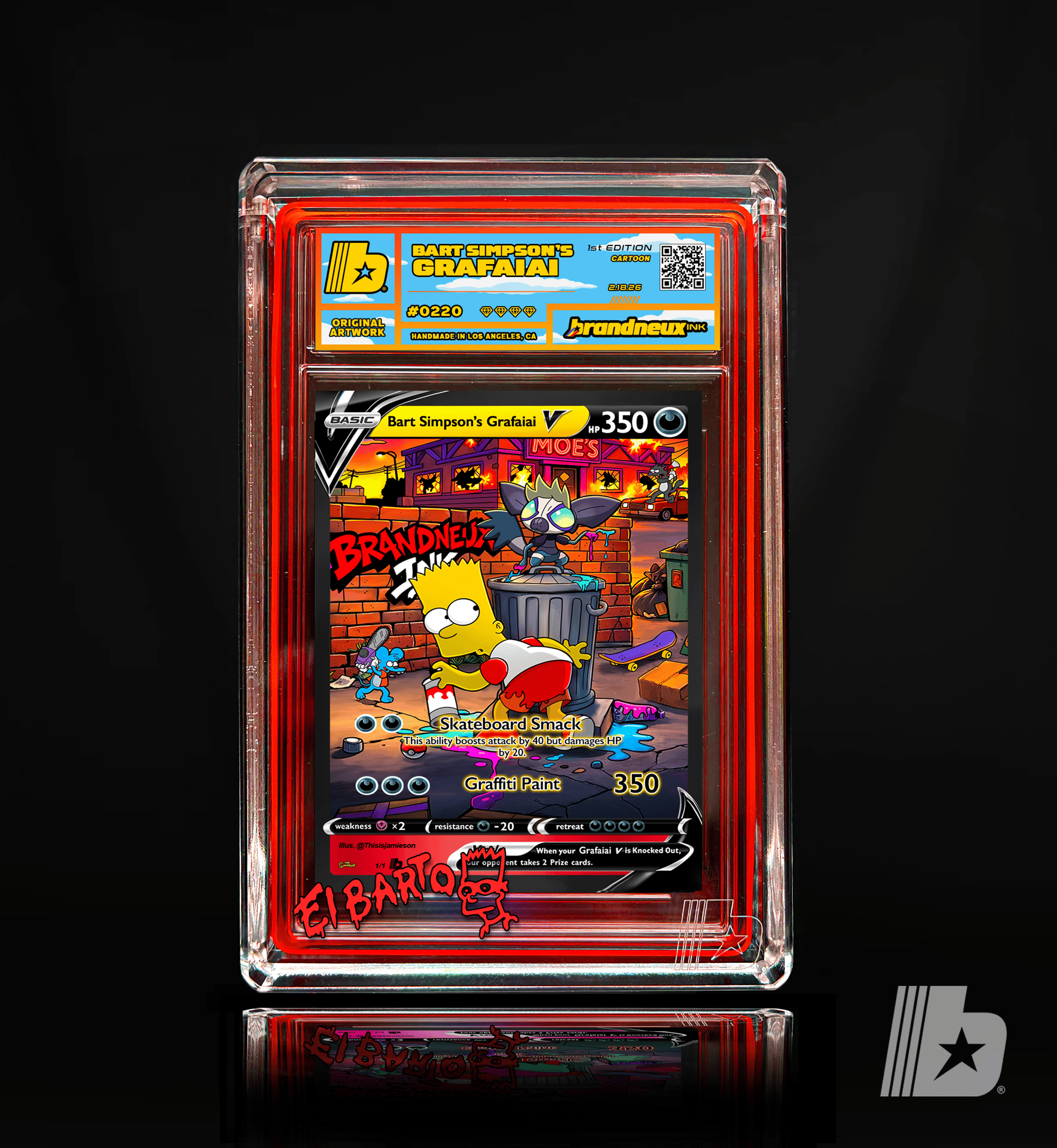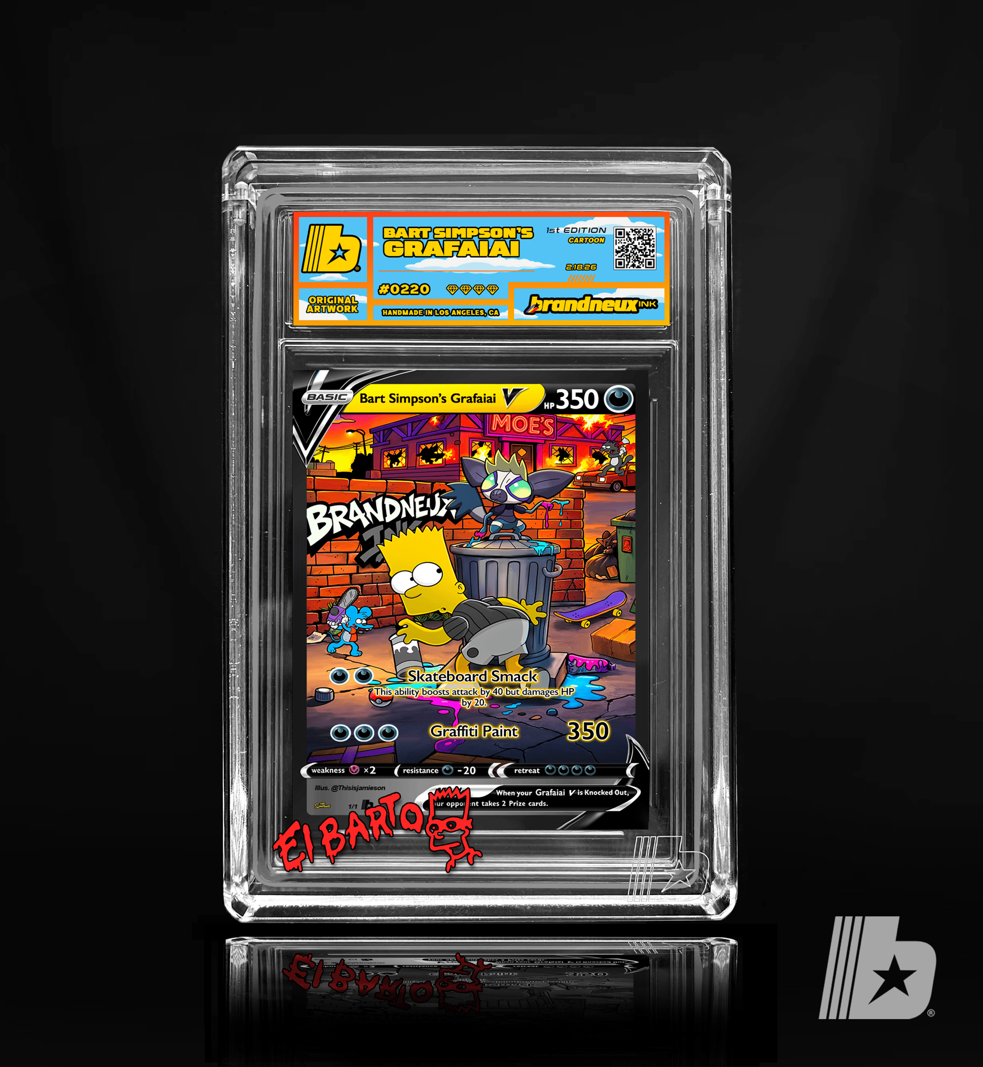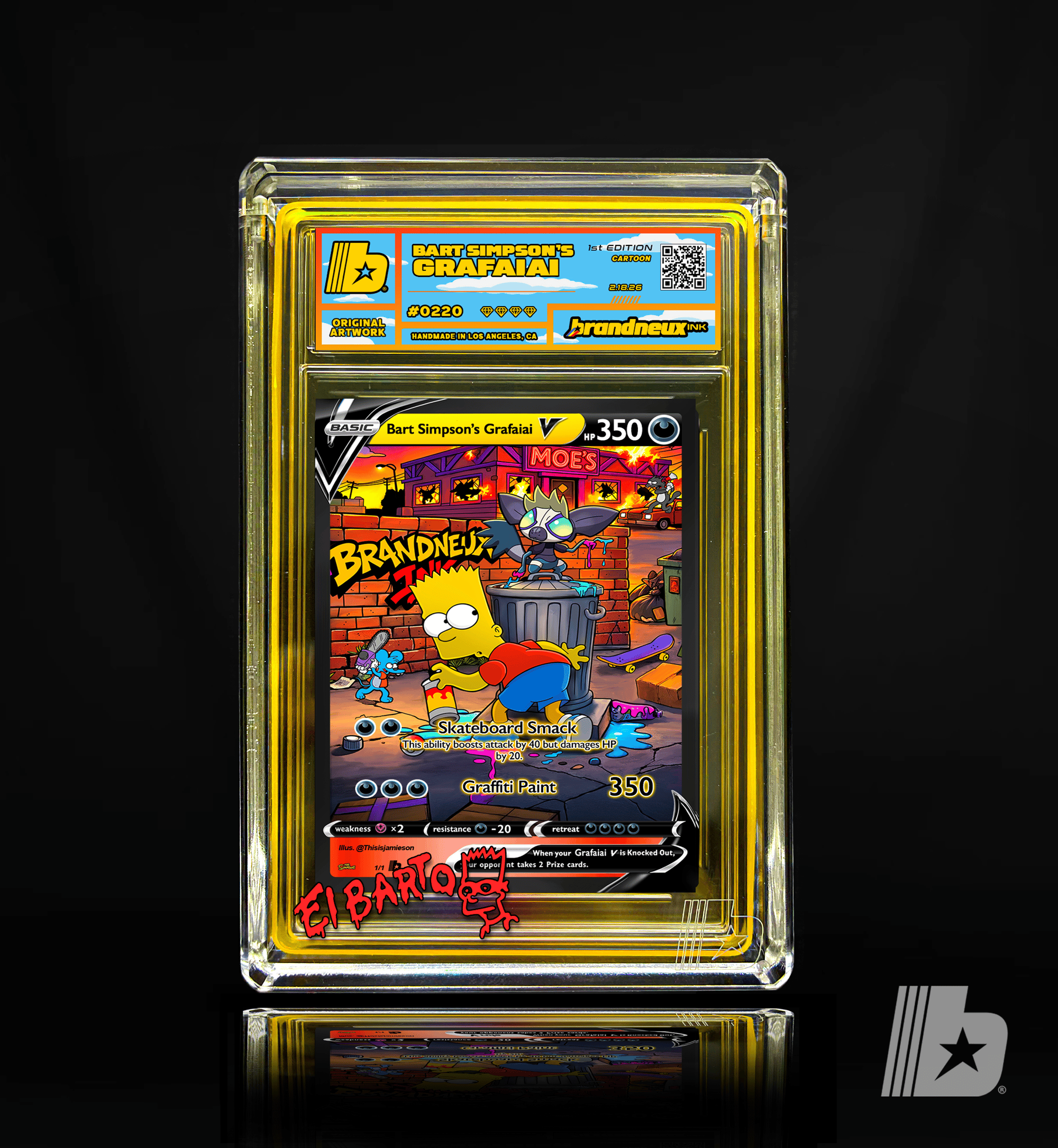 "When Bart Simpson links up with Grafaiai, mischief turns into a full scale neon takeover across Springfield. What starts as a few harmless tags behind the Kwik E Mart quickly spreads into a citywide explosion of color, attitude, and rebellion. Grafaiai’s toxic paint drips and crackles with chaotic energy while Bart stands back with that slingshot grin, turning alleyways into galleries and brick walls into bold statements. Every splash feels reckless, every line feels defiant, capturing the thrill of late nights, close calls, and art that refuses to ask permission. This piece is a tribute to rule breakers, boundary pushers, and anyone who sees a blank wall not as empty space but as opportunity."