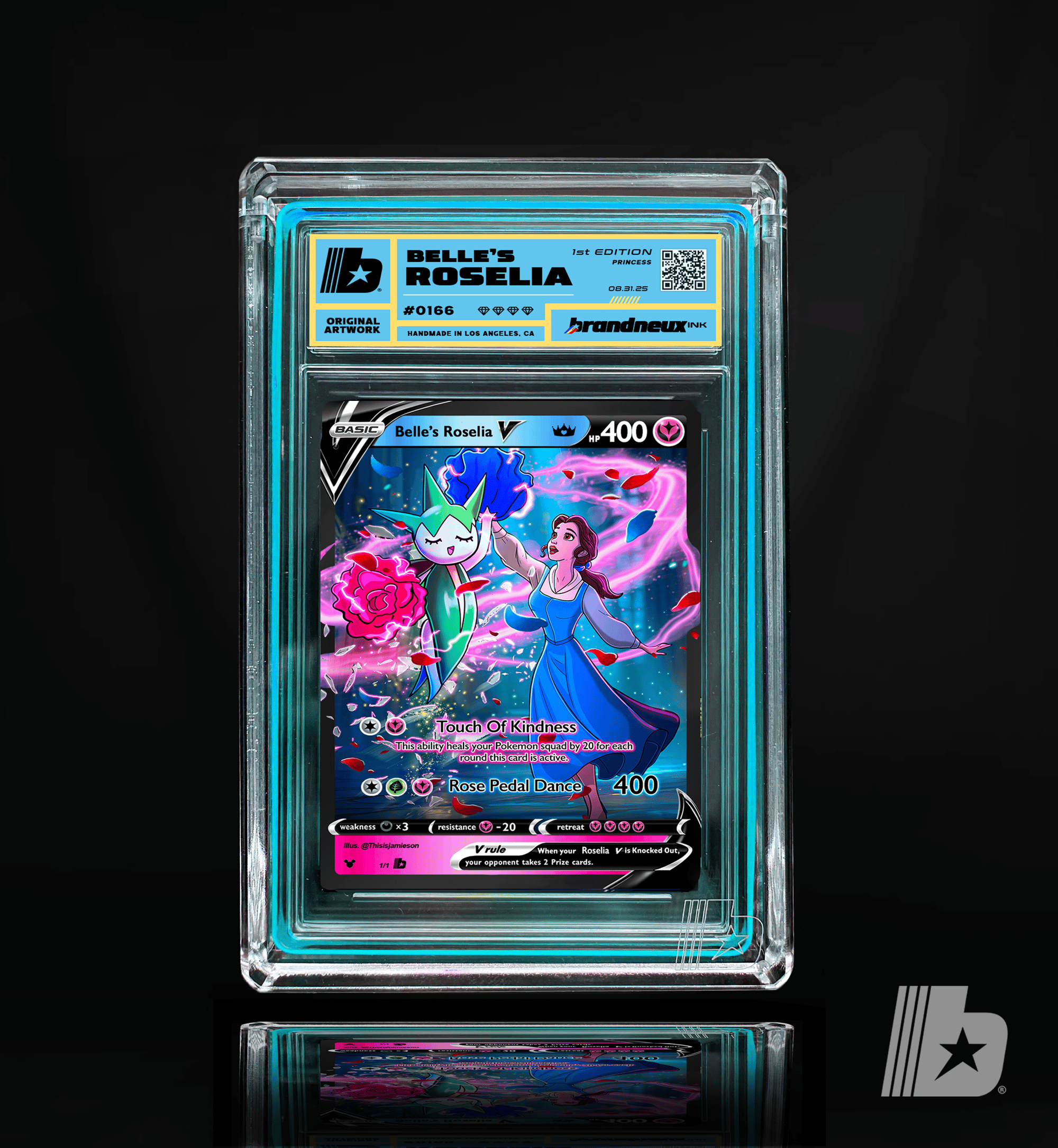 "When the final petal of the Beast’s cursed rose fell, it did not vanish—it blossomed anew, reborn as Roselia. From sorrow grew beauty, its twin roses reflecting both the pain of the past and the hope of a future set free. Belle, with her compassion and wisdom, now tends to Roselia as a living symbol of love’s triumph, each bloom a reminder that curses can become blessings. Together, they walk the restored halls of the castle—Belle radiant in her kindness, Roselia blooming with grace—proof that true love not only breaks curses, it makes something even more beautiful grow."