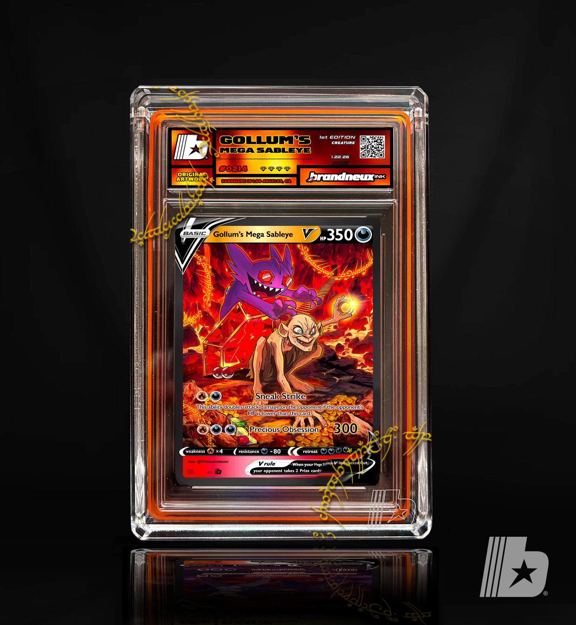 "From the depths of the caverns emerges Gollum, a crooked, whispering trainer bound by obsession, clutching his Mega Sableye as he once clutched the Ring. The great jewel in Mega Sableye’s chest is his new “Precious,” and together they skulk through darkness, hoarding gems, secrets, and souls. Gollum hisses commands in the shadows, and Mega Sableye answers with wicked loyalty, its single gleaming eye reflecting the same madness and devotion. Trainer and Pokémon move as one—two creatures twisted by greed, protecting their treasure at all costs."