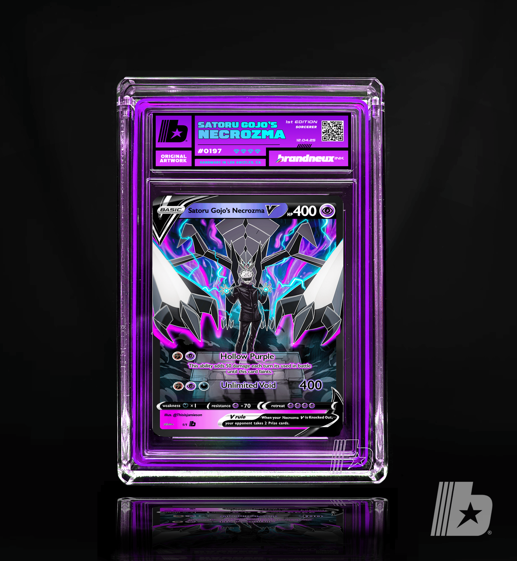 "Satoru Gojo stands unmatched, a force of limitless talent and effortless confidence. When Necrozma enters his orbit, its blinding prism energy aligns perfectly with Gojo’s mastery over light and infinity. Together, they bend space, distort reality, and overwhelm enemies before they can even process what stands before them. Their power is brilliance turned into a weapon, a radiance so intense it pushes back the darkness itself. In this partnership, infinity meets the prism, and anyone who challenges them is left in the void between."