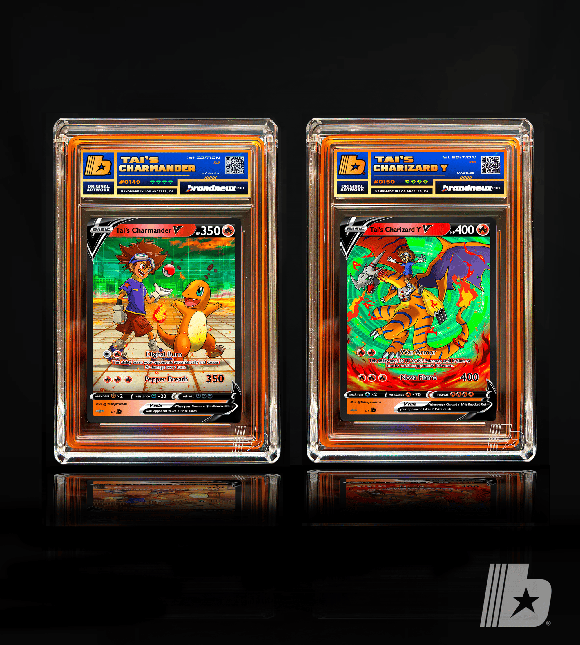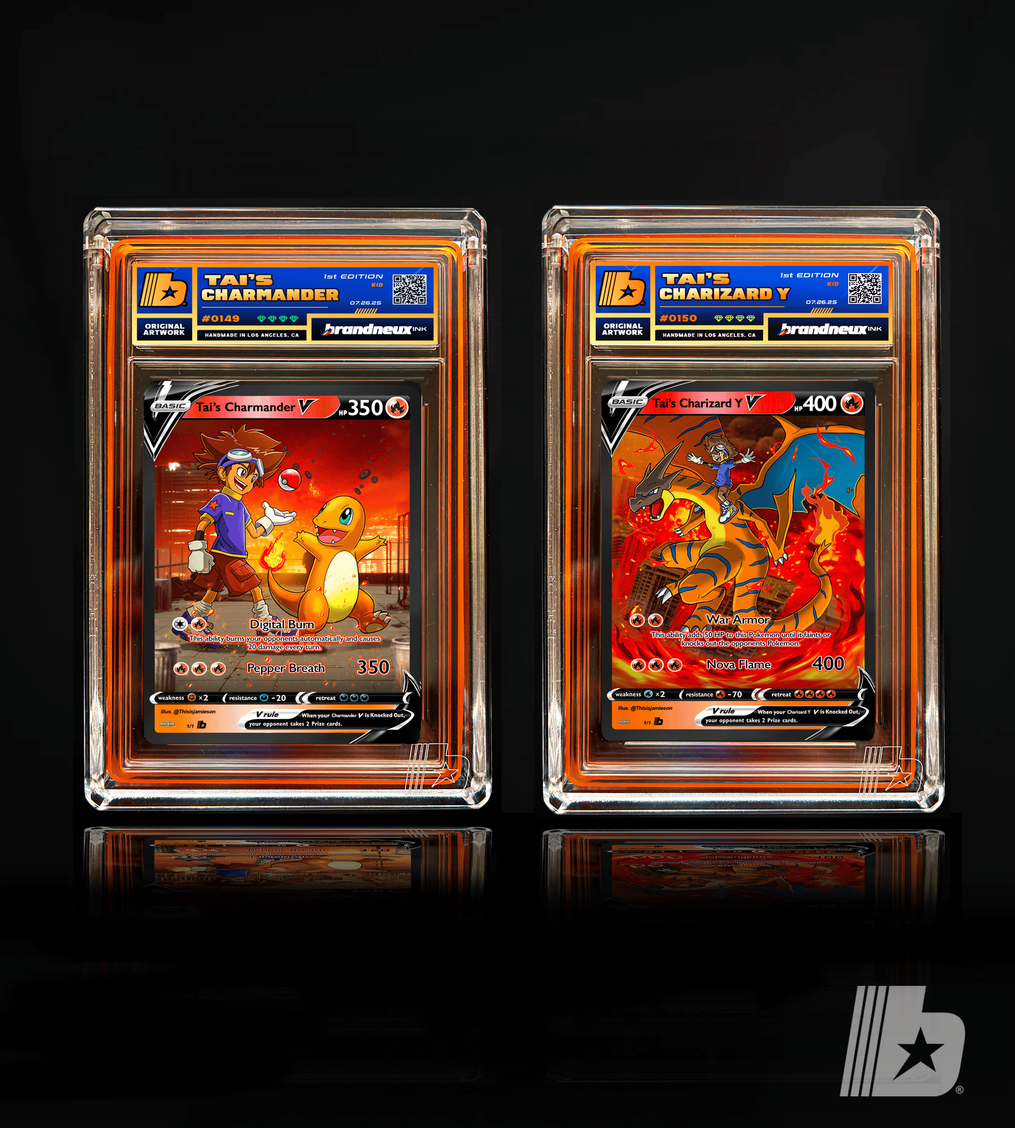 "Fueled by courage and the will to protect, Taichi’s bond with Charmander blazes like destiny itself. From a spark of innocence to the sky-scorching might of Charizard Y, their journey mirrors Agumon’s evolution—growth through battle, trust, and heart. Taichi leads with fire in his soul, and Charizard answers with wings of flame, fierce and unyielding. Together, they rise as partners shaped by challenge, proving that when heart and flame burn together, nothing stays small for long."
