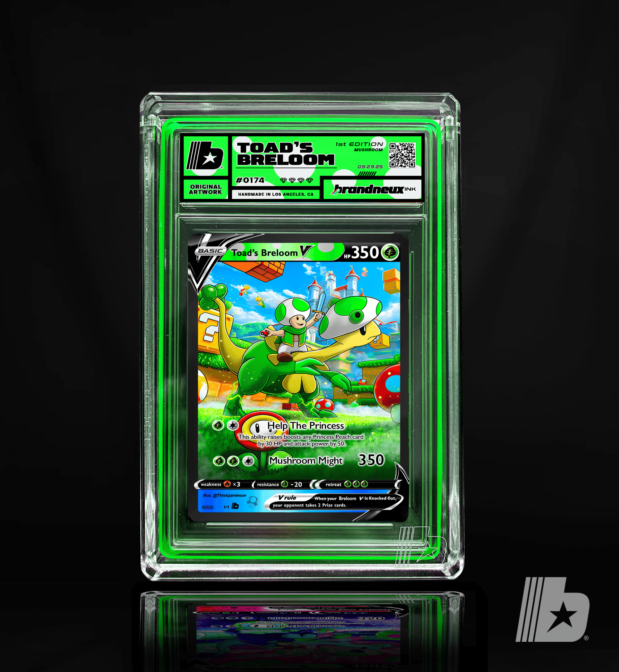 "Like loyal companions on adventure, Toad and Breloom bounce forward with energy and determination. Breloom, with its dinosaur-like body and mushroom cap, feels like a fighting, spore-slinging echo of Yoshi—quick, strong, and always ready to leap into action. Toad’s plucky courage pairs perfectly with Breloom’s scrappy spirit, the two charging ahead like mismatched adventurers who somehow always get the job done. Together, they’re not just mushrooms on the move—they’re a tag team of hops, punches, and playful grit, carrying that same unstoppable charm.