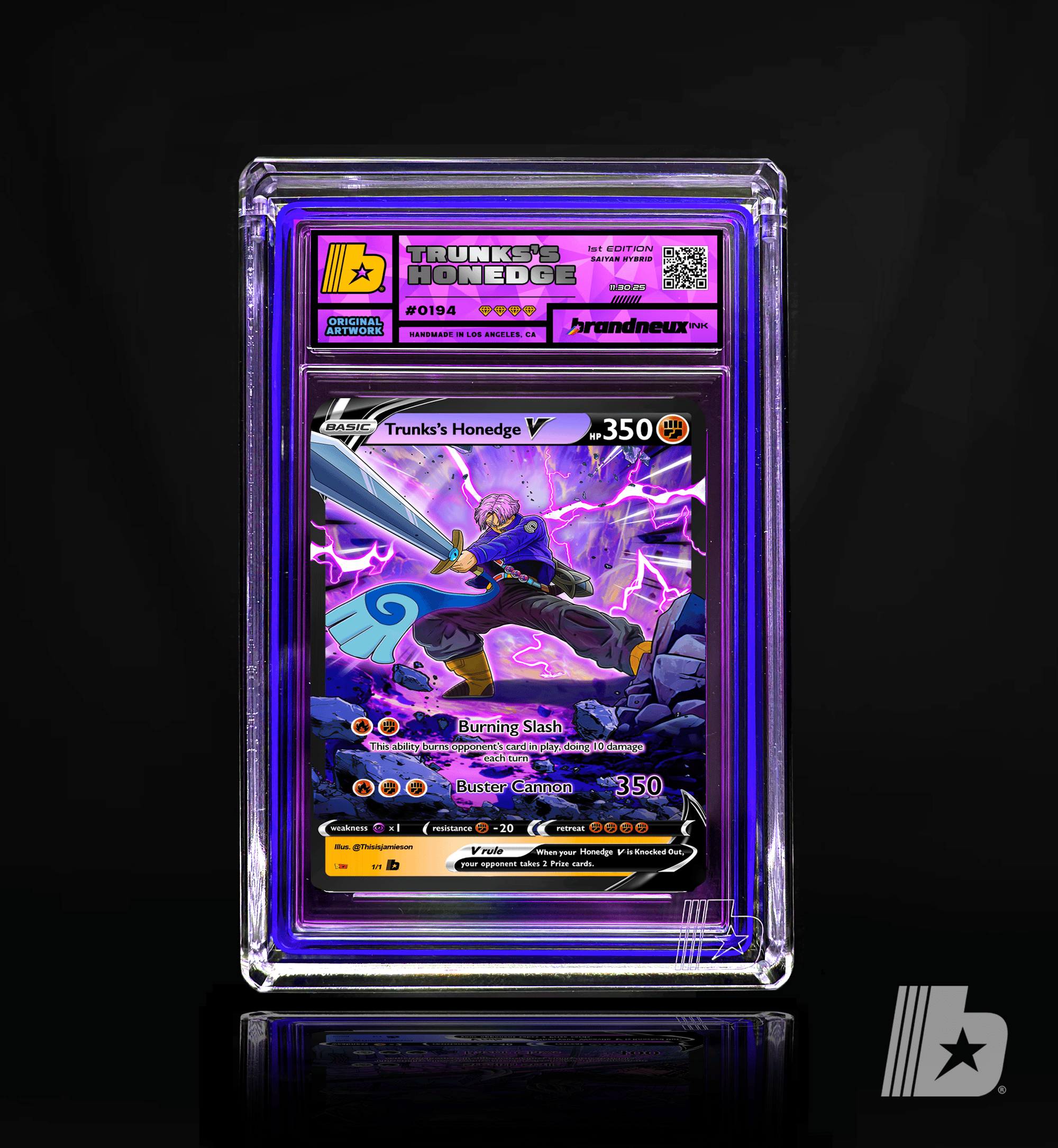 "Trunks wields more than a sword — he carries the weight of a future that needs saving. When he allies with Honedge, the bond is deeper than steel. Honedge senses his resolve and channels its ghostly power into every strike, enhancing Trunks’ precision and speed beyond human limits. Together, they slice through threats that span timelines, protecting both the world Trunks came from and the one he hopes to preserve. A warrior forged by hardship and a blade born from spirit — their partnership is a promise that history will never repeat its darkest days."
